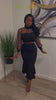 With this chic black two-piece set, designed to make you feel effortlessly sophisticated. The fitted midi skirt pairs perfectly with the sheer, puff-sleeve top, featuring a classy high neckline and delicate strap details that add a touch of drama. With its incredible stretch, this set molds to your curves for a flawless fit without sacrificing comfort. The model, wearing a size small, showcases how this look is perfect for a night out, a formal event, or any occasion where you want to turn heads. Style it with bold accessories and your favorite heels to truly make it your own!