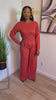 This effortlessly chic brown jumpsuit features a relaxed fit with wide-leg trousers and oversized front pockets. The off-shoulder neckline adds a touch of casual elegance, making it perfect for both daytime outings and relaxed evening affairs. Its versatile design balances comfort and style for a look that’s as laid-back as it is sophisticated.